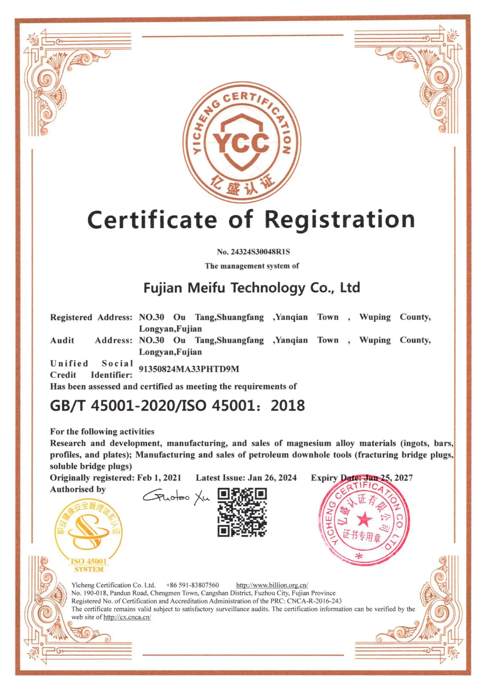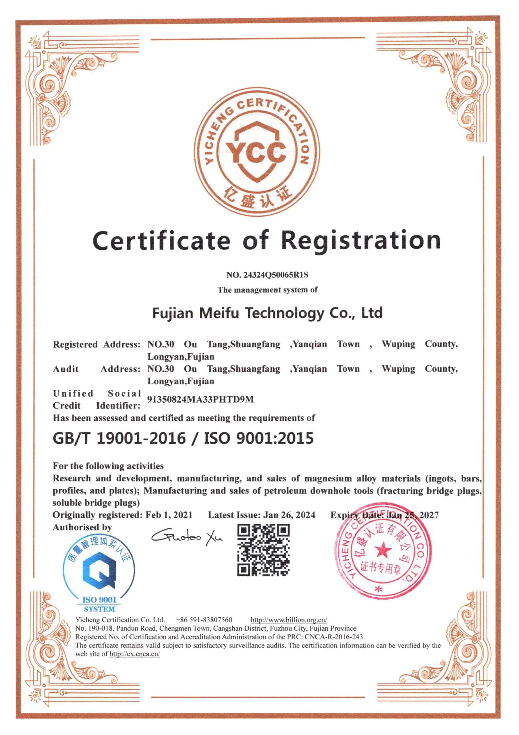 Meifu Technology, дочерняя компания Meifu Group, расположенная в городе Лунъянь провинции Фуцзянь, занимается исследованиями и разработками, производством и обработкой магниевых сплавов.